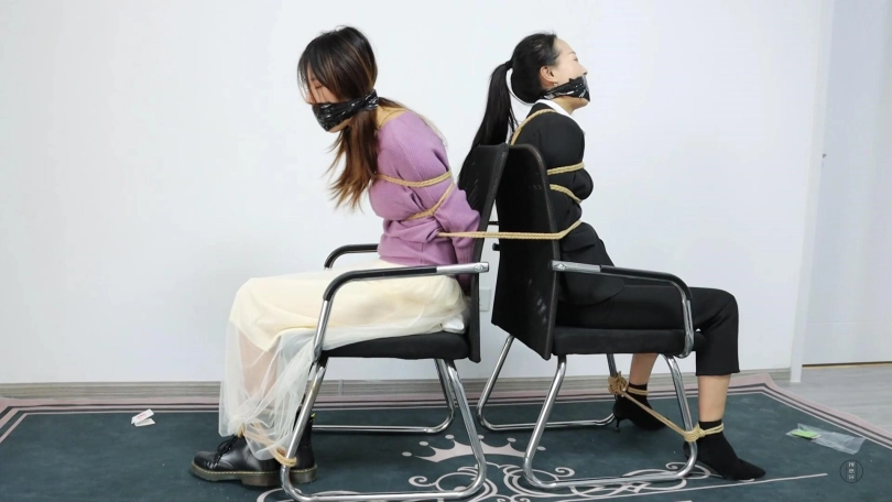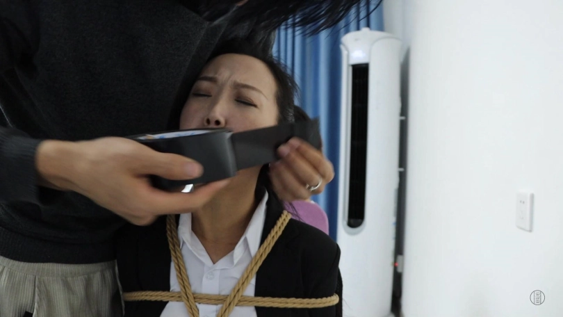 歹徒找到了现金和两枚戒指,从房间走出来,再从老板娘、客户手提包取得银行卡和手机。歹徒问她们各自的手机和银行卡密码后,考虑到不能那么快让二人挣脱,把缠着二人腰间的绳子解开,先把老板娘安置在椅子上,左右腿分别绑在椅子两边,这次歹徒察觉老板娘嘴巴被封仍要说话,所以从客户的提领的货包取了一双新袜子,卷成球状堵进老板娘的嘴巴,用胶带紧紧缠绕她的嘴和后脑;然后把客户拉到另一张椅子,背靠背,与老板娘不一样,客户的双腿是交叉捆绑。这时客户慌了问:这够了,目标已达成,已经把老板娘绑得死死的,我们该一起逃吧,我绑成这样怎么一起逃呢?歹徒:我不管。客户:你答应过我只是来这里探路,再引你过来,我顶多只是演陪绑,成事再给我3000块。原来客户是歹徒的同伙,老板娘猛然醒觉,回头向靠背的客户瞪眼怒视。客户满脸歉疚,向客户说:姐对不起,我被人利用了,说时迟那儿快,另一双从客户的货包取出来的袜子,用与老板娘同样的方法堵到客户的口中,胶带缠绕头部封嘴。歹徒又用货包剩下的2双袜子,套上2人的双手防止她们把绳结解开。