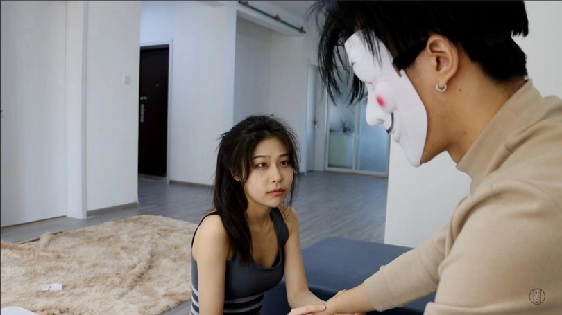 某日晨跑回家后,被埋伏于家中的仇家迷晕,并惨遭捆绑堵嘴