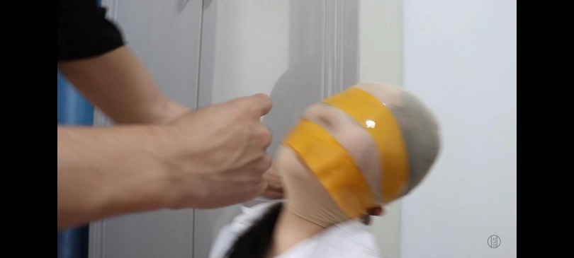 【得意客】入室危情1:高个黑丝女白领被绑架,黄色胶带捆绑丝袜套头,封嘴封眼。