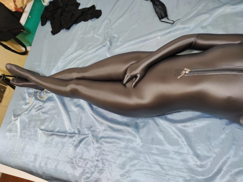 【华素】黑灰Zentai全包超紧亮黑丝袜完美多层全包