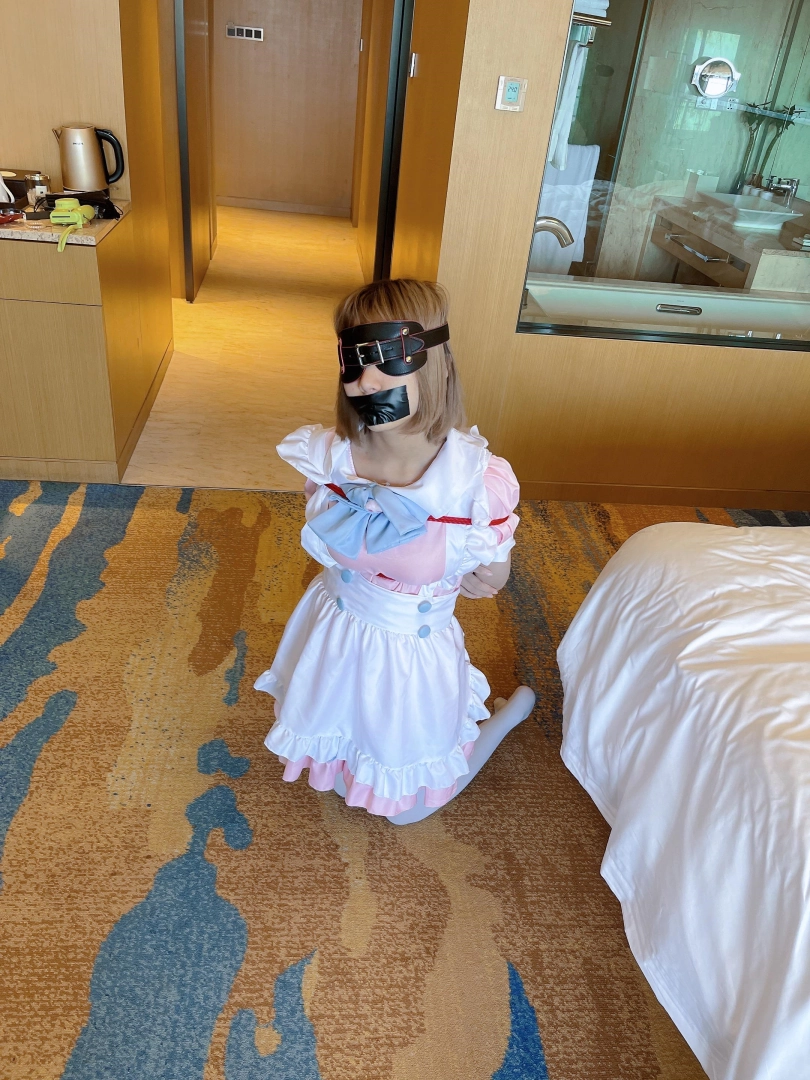 首先用胶带蒙眼封嘴、用布条勒住。脚腕并拢捆绑后把双腿折起,这样双腿不但折叠绑在一起,两条腿同样不能分开。上下左右全方位拘束。然后把少女的上半身和大腿绑在一起,强制弯腰。最后把少女的脖子、胸口和大腿折叠起来。这样一来,可怜的少女就像被绑架的肉货一样绑成一团、动弹不得啦~