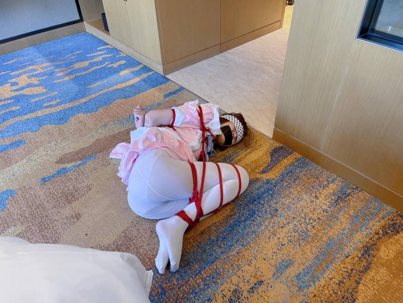 模特挣扎超级努力,用团缚的姿势在地上移动了很远~几乎可以说是蠕动了~但是...会不会成功呢~
