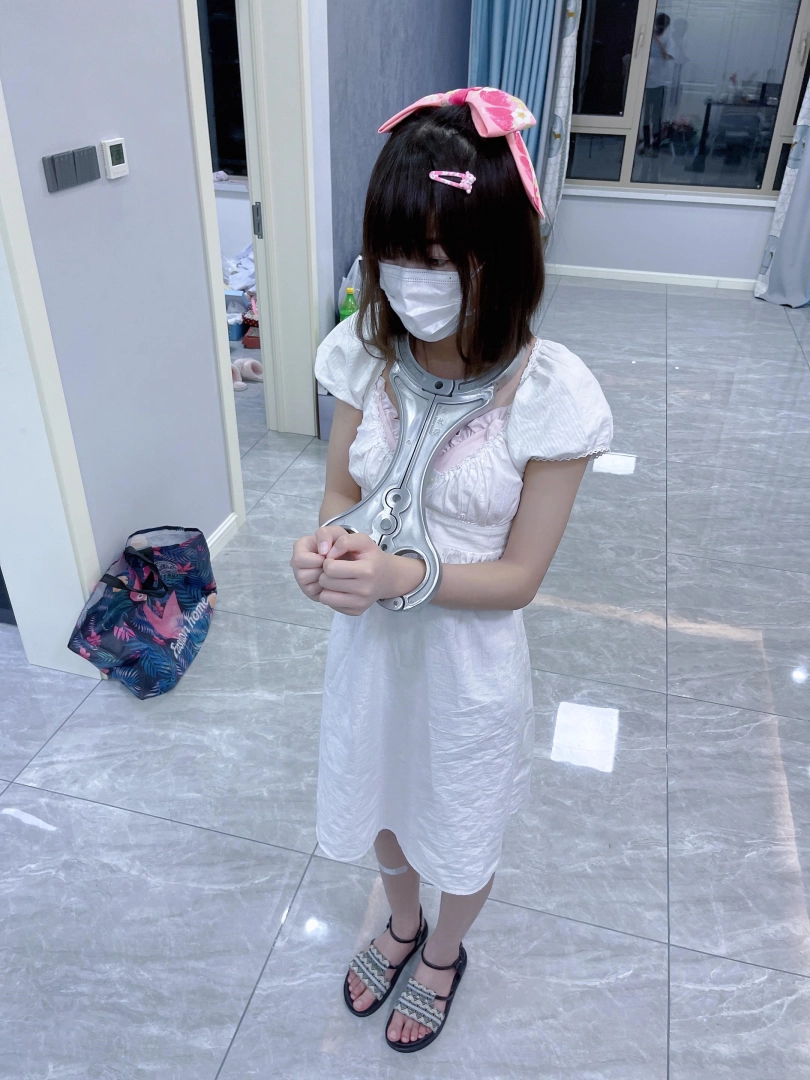 更换监狱内两种款式的凉鞋并展示。让小囚犯茶茶跪在地上,面壁思过。