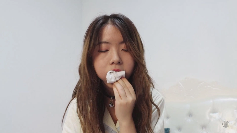 小清:现在我就连睡觉都被绑着了,嘴里还塞着自己穿出汗的臭袜子,为了保证睡眠质量,我还用了眼罩和耳塞,虽然现在看上去更像是剥夺我感官的刑具就是了,那么先晚安吧,早上起来再进行这场游戏的收尾阶段~