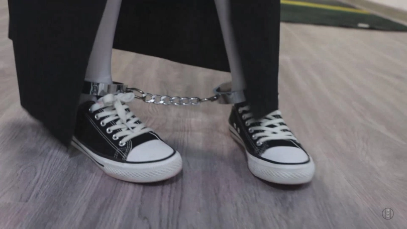 神秘人给小清解开手铐,说道:不错,够聪明。那我的第一条命令就是,告诉我为什么要把脚上穿着的那双白袜留到最后。