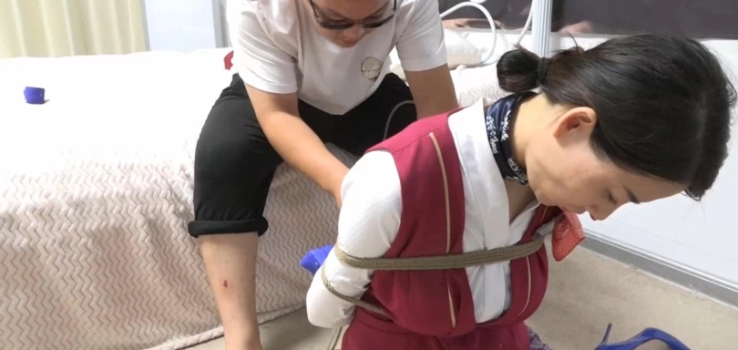 老板为柳洋开好房间后,柳洋觉得有些困了便悄然的进入了睡眠。待到夜深人静的时候,柳洋所住的房门突然被打开,闪进一个人影,这个人正是宾馆老板,而他的手里也是拿着几捆绳子与一个奇怪的小球,慢慢向正在熟睡的柳洋靠近。不过柳洋到底还是一名女队长,警惕性非常高,很快就发现房门被打开,柳洋迅速起身,掏出了随身携带的手枪。(剧本不对啊,剧本中我明明写的是手枪,这棍子是什么意思啊,算了这个细节就不在意了)宾馆老板也是被突然起身的柳洋吓了一跳,随手将手中的绳索一丢,将灯打开。柳洋:“老板,你这是什么意思?”老板:“这是误会,我只是想问问你有什么需要吗?”柳洋捡起地上的绳子与口球说:“那你这几捆绳子跟这个奇怪的小球是什么了,看来这家店确实有问题啊。”话刚说完,柳洋觉得自己的头有点晕乎乎的,瞬间全身无力坐在了地上,老板说:“嘿嘿,确实有问题,不过你发现的太晚了。”柳洋丝毫不慌张,坐在地上说:“看来你在饭菜里下了药啊,那你就用这绳子该捆的捆该堵嘴的堵嘴吧!”(嗯?居然这么嚣张一点都不慌)老板也是丝毫没有犹豫,很快就将柳洋捆了起来,戴上口球眼罩。捆好之后不忘检查一遍,确定把柳洋捆的结结实实的才放心下来。接着拿起柳洋随身携带的包包检查起来。老板说:“你先在这老老实实的待着,等下我再来收拾你。”说完便离开房间,留下柳洋独自挣扎~
