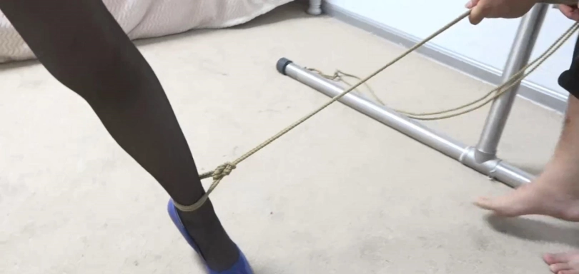第一集柳洋也是被宾馆老板成功的绑架,宾馆老板在将她捆绑好之后也是立刻就将柳洋随身携带的包包检查了一遍。发现她随身携带的都是一些简单的衣物,并没有什么可疑的东西,只有她刚刚用来防身的手枪(上集也是说了剧本里是手枪的,结果是棍子这里再次说明一下)而且还是一个女子跑到这么偏僻的地方,便对她的身份产生了怀疑,于是决定好好的审问一下她。于是老板将柳洋绳索解开,将她带到一个架子面前。柳洋因为老板在饭菜里下的药此时还是浑身无力,只能任由宾馆老板对自己进行束缚。老板先将柳洋的双腿分开,用一根绳索分别捆在了她的脚腕处,在将多余的绳子分别捆在架子的两旁,让她的双腿不得不分开,无法合拢。在将她的双手进行直臂捆绑,将她的双手吊在了身后,让他不得不往前低着身子,高高的撅起自己的臀部,保持一种羞耻的姿势,并为她捆上了一个股绳。被紧紧捆绑起来的柳洋不停的蠕动自己的双腿,想要将自己的双腿合拢,但是被强制分开的双腿任她如何用力也无法摆脱脚腕的绳索。捆好之后老板为她戴上口球眼罩,拿来一根皮鞭,看着她那高高崛起的性感臀部,用力的抽了下去。突然感受到臀部带来的疼痛,柳洋被抽的呜呜大叫起来。经过几分钟的折磨,老板解开柳洋的口球说:“怎么样还舒服吗,不想继续受苦就老老实实的告诉我你是什么人。”柳洋被折腾的气喘吁吁的说:“我真的只是一名普通的空姐。”老板见柳洋还是嘴硬,开始扯动捆在她[X_X]的股绳。柳洋被股绳带来的疼痛大叫起来。老板:“普通的空姐会随身带这种东西吗,一个女人会来到这么偏僻的地方?”柳洋无力的说:“我真的只是一名空姐,我是度假路过这里的,我一名女子带着这个防身也很正常。”宾馆老板见她如此嘴硬也不在跟她纠缠,重新为她戴上口球说:“很正常是吧,我对你的身份没兴趣了,等会就将你给买了,看你还敢嘴硬。”于是老板便留下柳洋,出门联系买家去了~