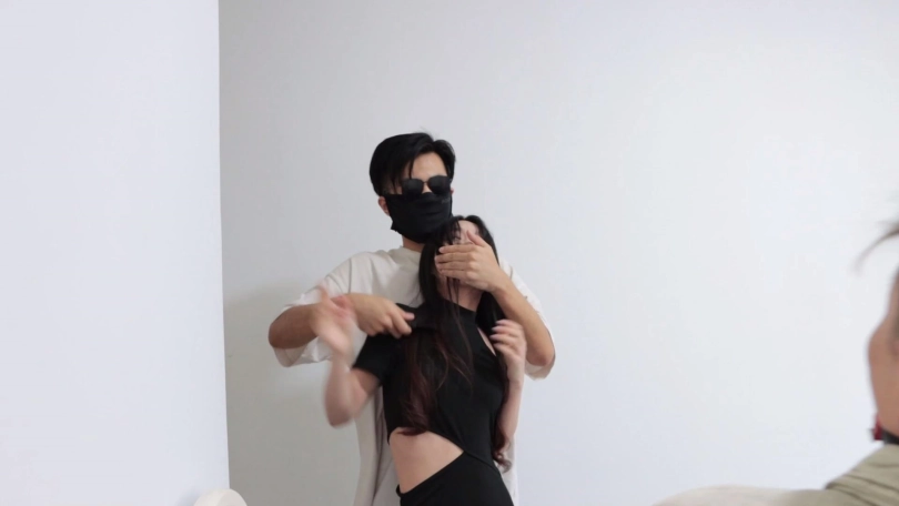 剧情:美女琪梦下班回家发现自己表弟竟然被人捆绑用口球塞嘴捆在家里,正准备给表弟解开时,被埋伏在家中的入室劫匪捂嘴劫持。