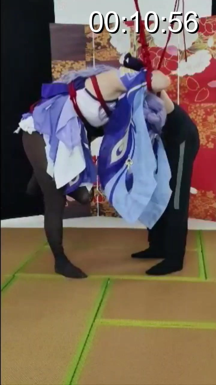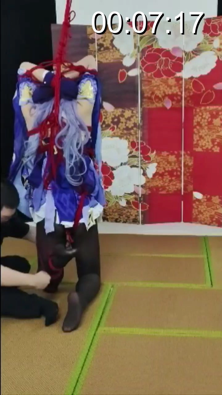 刻晴被捆绑后吊在竹竿上,跪也跪不下站也站不起,两难,还被人戏耍,最后更是让她在很滑的榻榻米上强制单腿站立