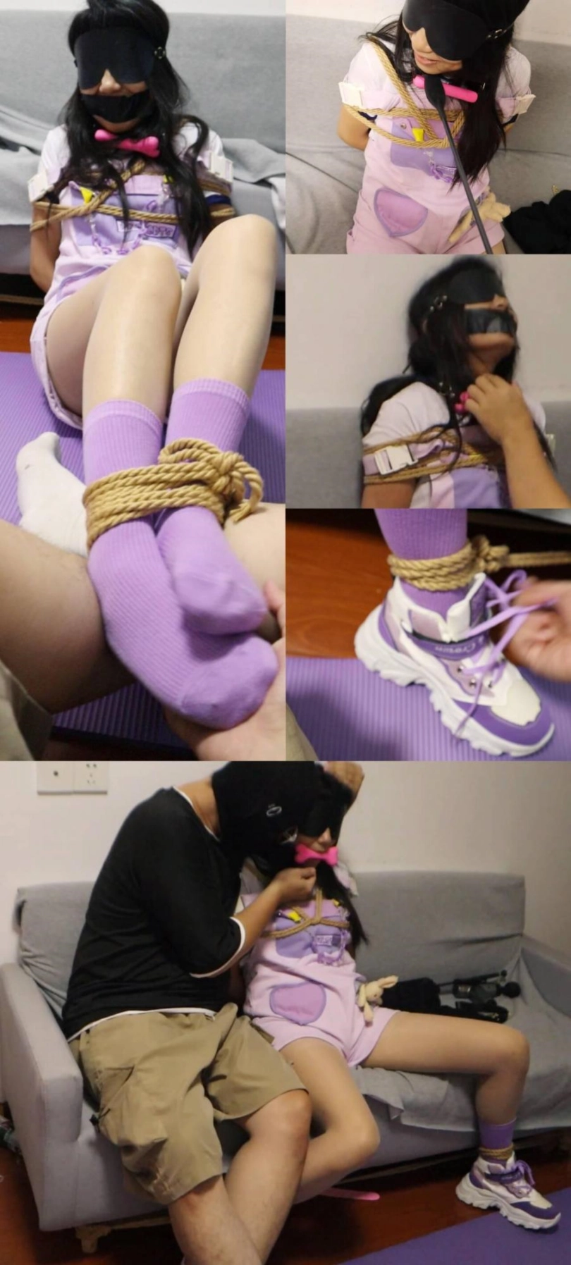 双视角,少女A安安姐的工装可爱风,她只是我的姐姐,姐姐说紫色很有韵味,所以连鞋袜都是紫的,口含骨头口塞,折磨超敏感的姐姐当然要狠狠挠啦,挠到笑哭才对,不听话就打,强迫对话数数。