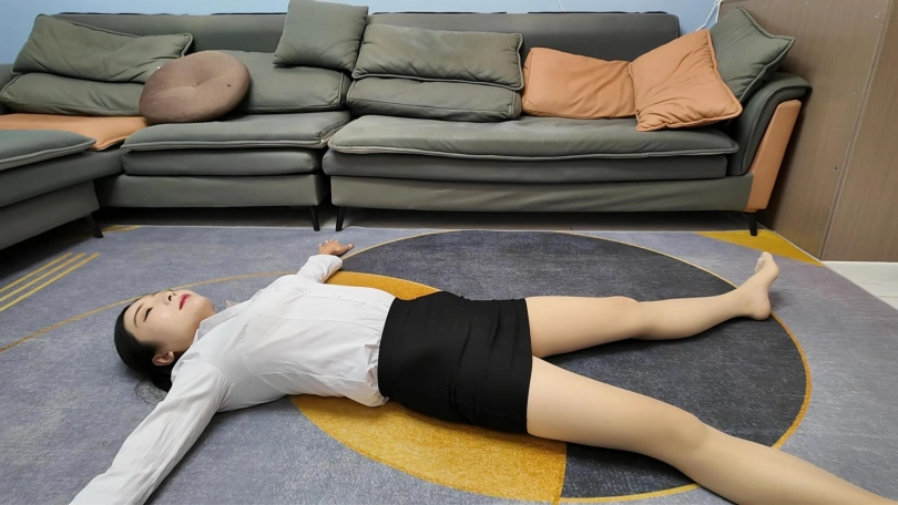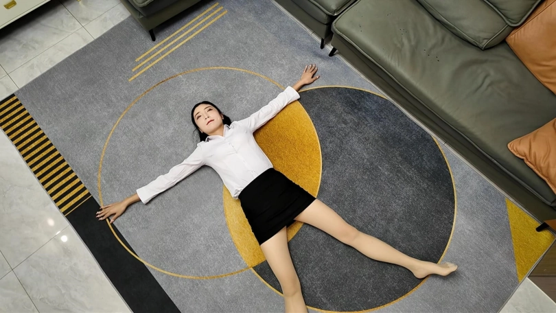 白领佳佳下班实在是太累了,直接躺到地上,大字躺,嘴角露出不经意的微笑,过来一会就站起来走了两步,又躺下,完完全全的大字各种展现