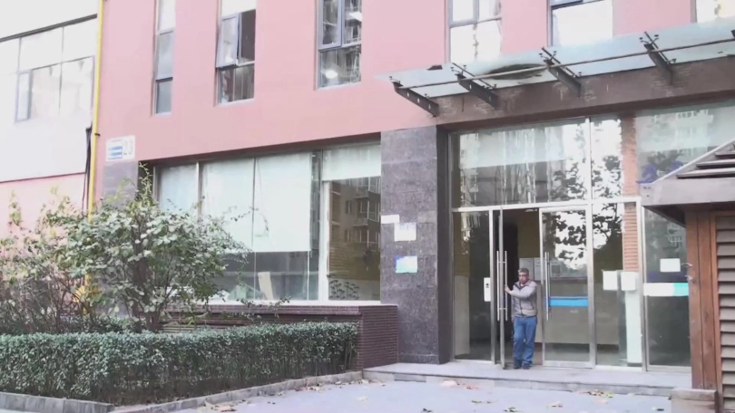 了。一座高耸的 写字楼的 大门被推开了,王力拎着手提包走出了 大楼,他带着 一副文化镜。出门抬手看了