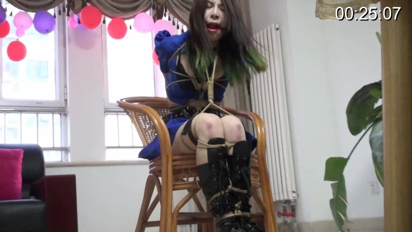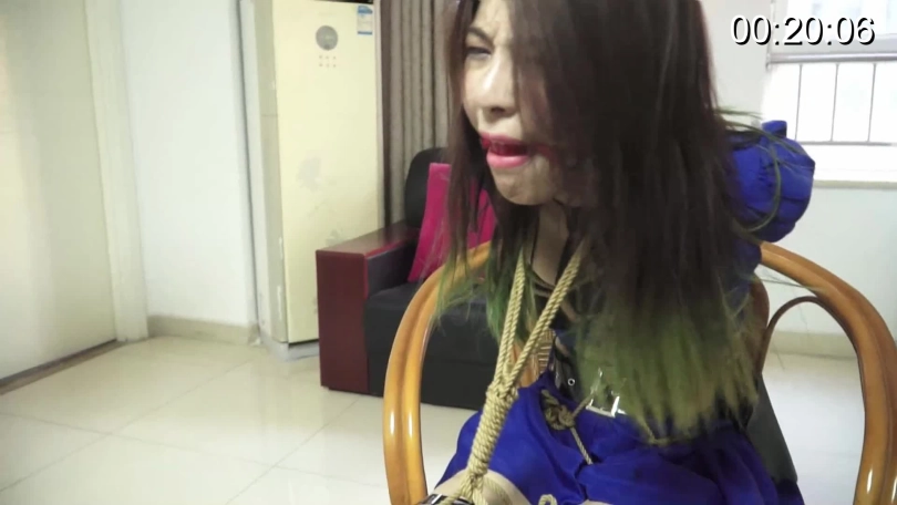 双手被难受的绑在身后,还用绳子把脖子和膝盖连在一起,女警只能痛苦的低着头,任由歹徒抚摸...