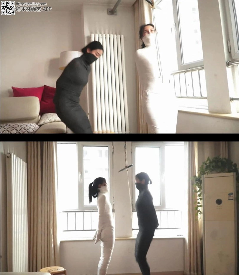 【逍遥】超稀有!《木乃伊姐妹02》黑白木乃伊美女 翻滚 站立 够小刀 跳跃 各种艰难动作 !美女们累的脸都憋红了~绷带握拳包裹的小手就算挣脱也无法解开拘束