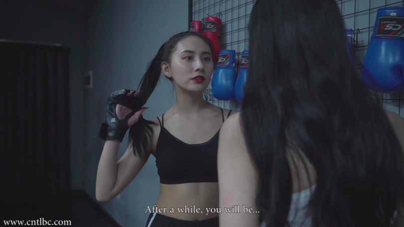 Yezi was practicing in the gym. Ting laughed at her for looking too weak. Yezi was not convinced, so she had a quarrel with Ting. They finally decided to fight a cruel boxing match...