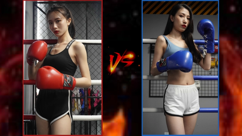 These are two new boxing girls. They look pretty and confident. They want to compare who is better by boxing...