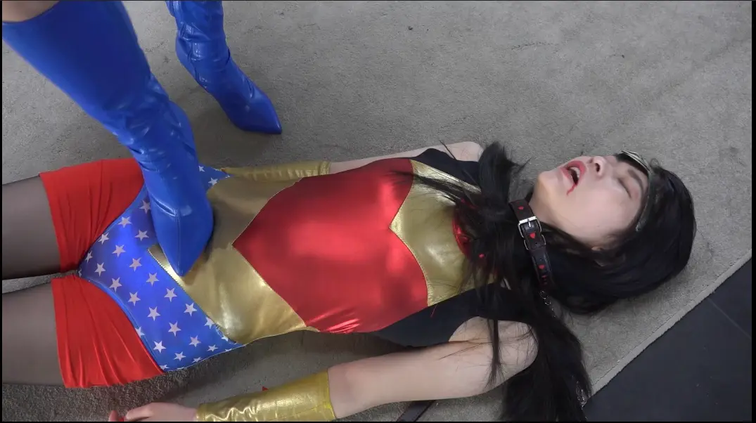 神奇女侠接到消息抓捕黑化女超人,女超人使用控制技能操纵神奇女侠在自己身上做一系列羞耻的事情。