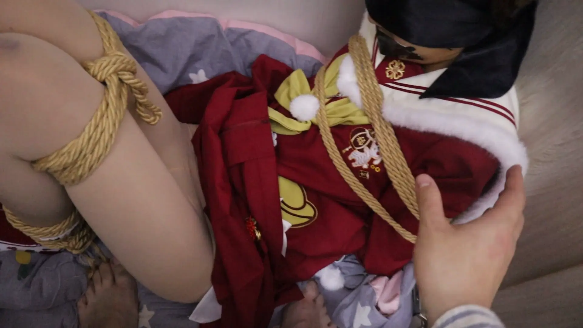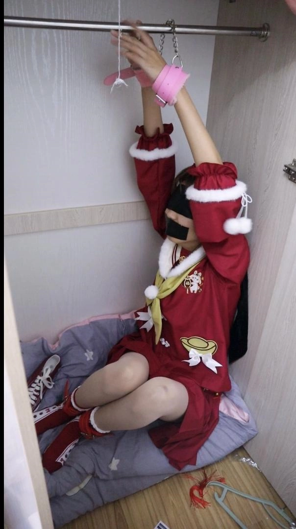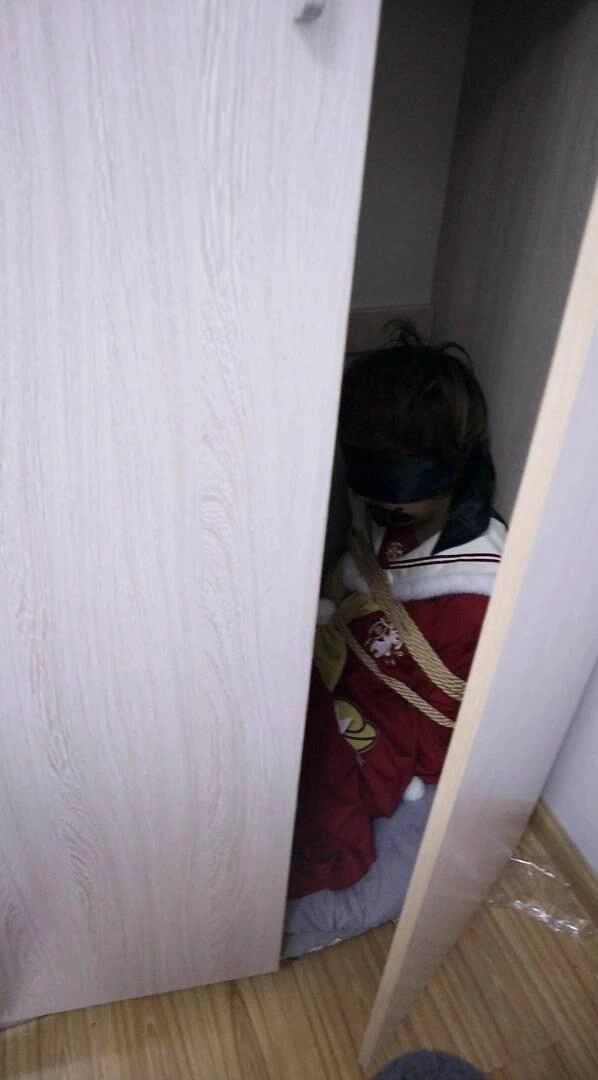 这衣柜里面怎么有这么喜庆的一个被捆绑的短发萝莉啊 铐撩与绳子分开绑