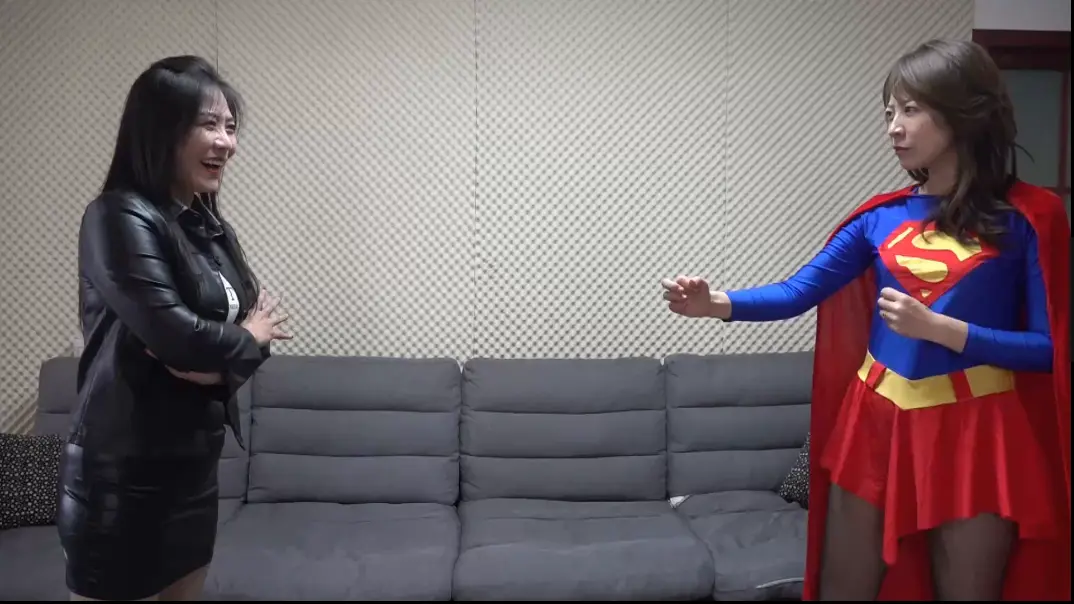 女超人接到神奇女侠陷落的消息,前往A处解救神奇女侠,没想到邪恶女反派早已等候多时,女超人在战斗中占了上风,追问邪恶女反派把神奇女侠藏到哪里了,女反派把女超人带到了一个房间利用神奇女侠的套索把女超人牢牢的捆住,女超人痛苦的呻吟越挣扎反而越紧。
