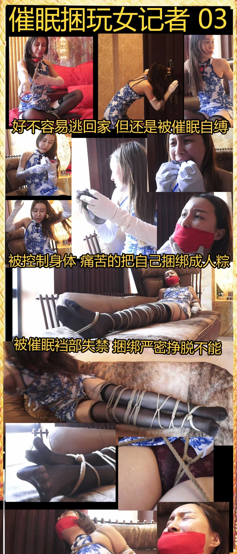 【逍遥】剧情大作《催眠捆玩女记者03》丰富剧情+逍遥花旦 旗袍长筒黑丝 被控制强制自缚 超超超!绳子超密度人粽式捆绑!光黑丝美腿就12道绳子~