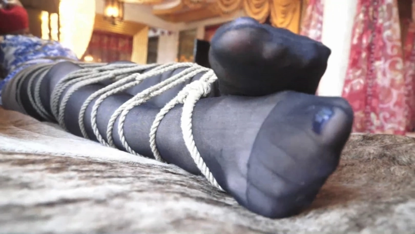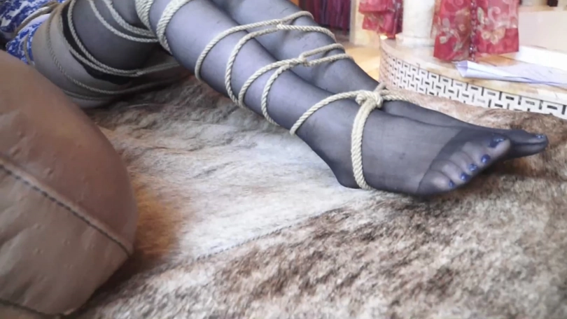 美女听到后立马疯狂挣扎起来,但很快瘙痒就开始了,美女的双腿开始互相摩擦,丝袜脚也开始互相磨蹭。