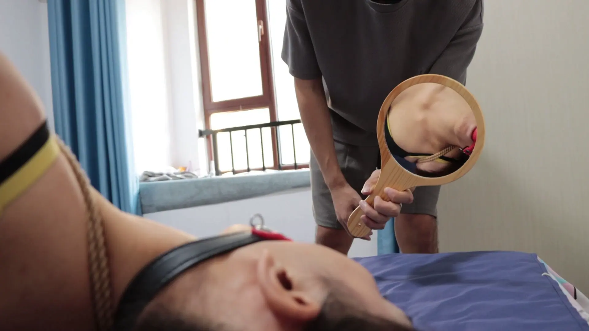 穿上男人为她准备的衣服带上口球后,发现衣服和塞口球有魔法,手被强制扳到背后,双腿也并拢无法分开,挣扎一会儿后被一股力量推倒,被迫保持驷马的姿势挣扎,男人进屋后说:看来你还是不知道你现在的处境,我让你看看。说完拿了一个镜子,通过镜子,雨晨发现自己被绳子驷马捆绑了。在被男人带走之前雨晨费劲挣脱,但衣服脱不下来,口球取不下来,又因为太累了,就在床上睡着了,等醒来后发现又被驷马捆绑,挣扎无果。