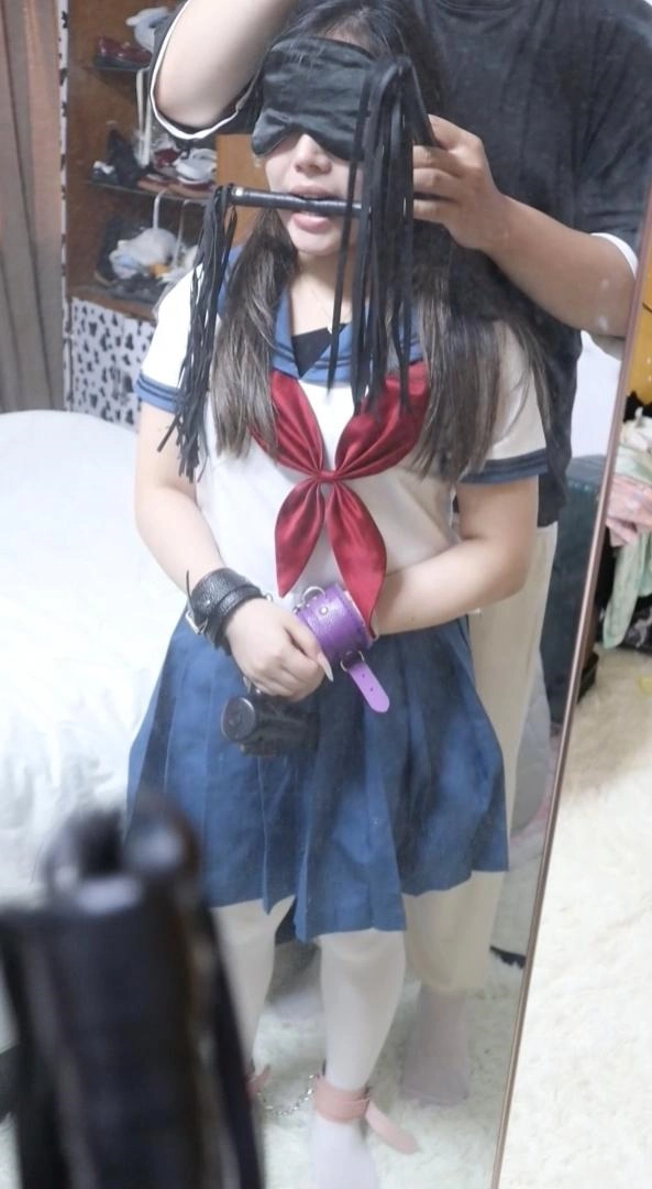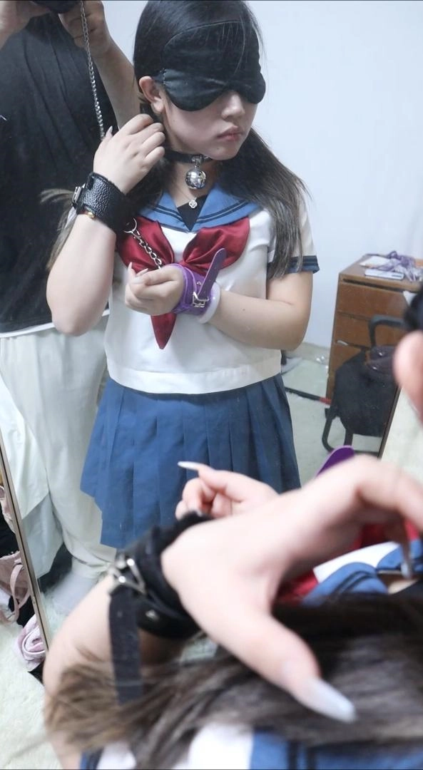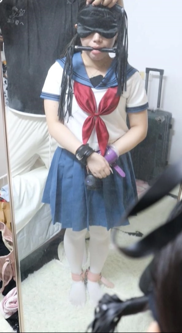 【荷仙少女短篇集】 清纯水手服萝莉凌辱面对镜子镣铐被鞭打,嘴咬鞭子哭泣,舌头吮吸 抚摸强迫自己打开玩具开关低声呻吟在调教结束后自己带项圈被迫i说出谢谢主人 调教的话语 2