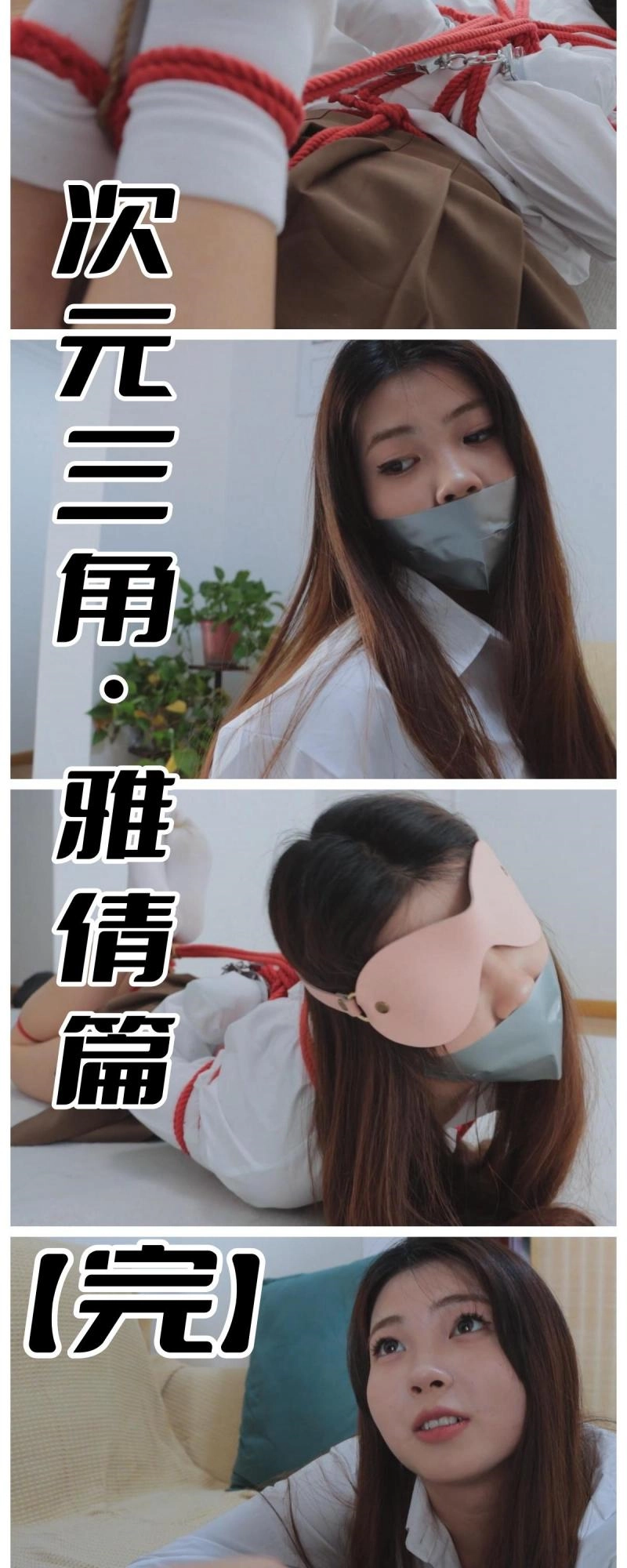 【亮点】说穿了就没意思了,进入正剧中寻找答案吧,我还做了点衔接的小镜头,方便引出之后多人本的部分,感觉像在拍复联似的(笑)非要说一个的话,那就是堵嘴的袜子是模特自己穿来的原味,由她自己亲手塞进嘴里的(赞)。