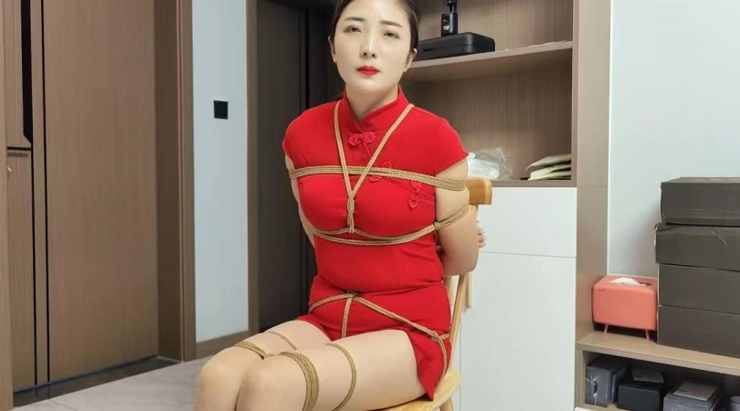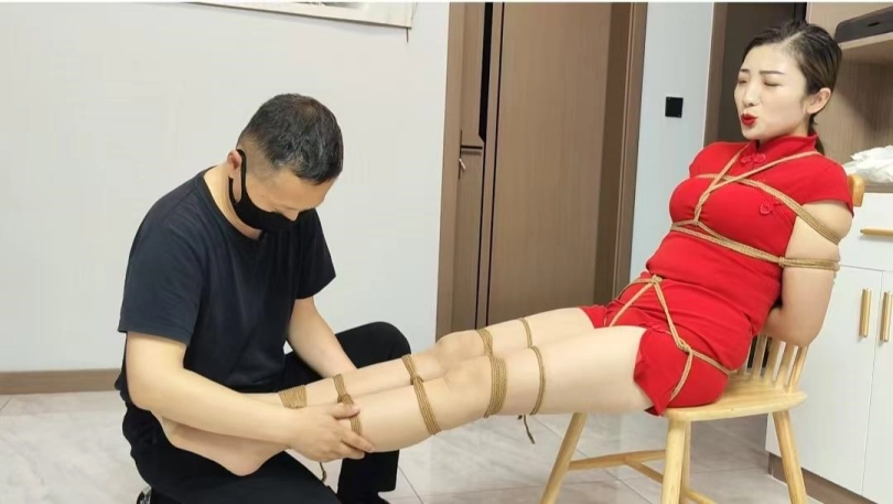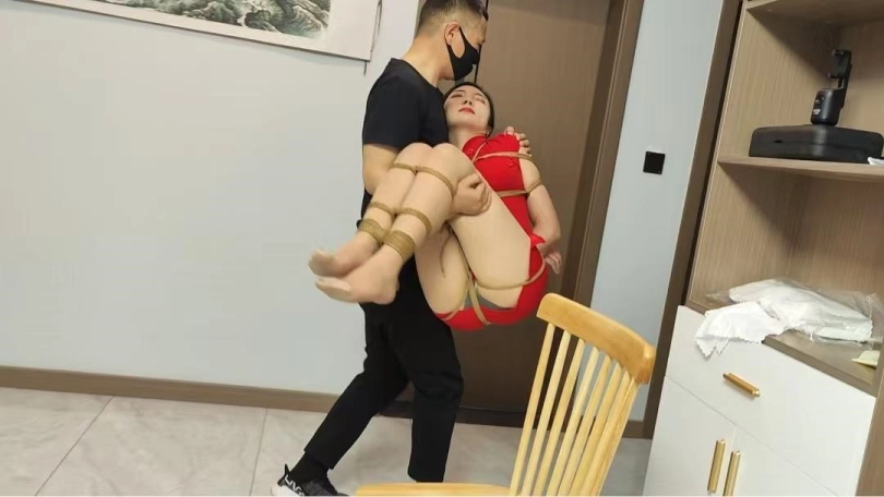佳佳是一名卧底,被组织领导发现后迷晕,绑到椅子上面折磨,逃跑不成又被捆到床上,驷马蒙眼,佳佳一身红旗袍,更显风味