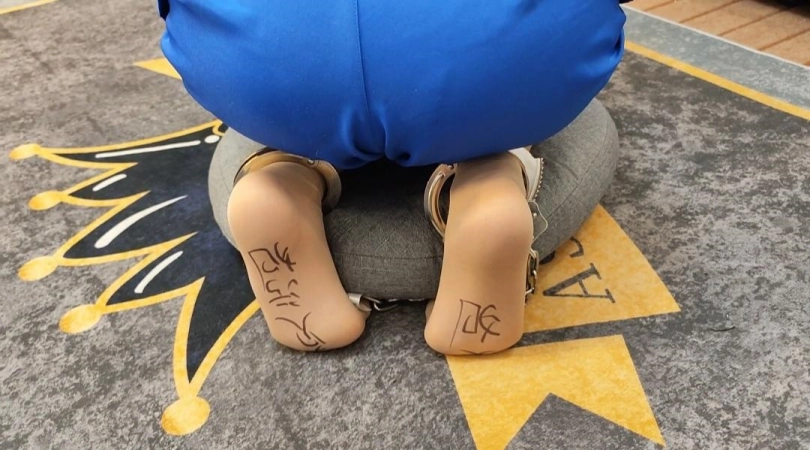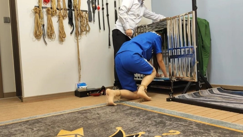 公司高管李佳佳贪污被抓,老板捞人,条件是做老板的私人女囚,这天老板没事,就命令李佳佳换衣服做女囚,带手铐脚铐,牵出去,鞭打,脚底板写上女犯字样,最后光笼子,从此李佳佳就成了老板的私人女囚