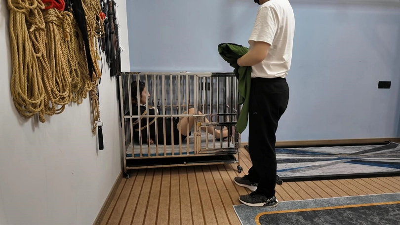 先把佳佳日式紧缚捆绑,放置到笼子里面、等候客户前来体验。体验流程是先后手吊,强制高C,休息一下后高手紧缚,鞭打,各种鞭打,任何分腿缚,继续强制高c,佳佳非常敏感,这个客户也非常会玩,这次体验后来听佳佳说让她[X_X]了三次