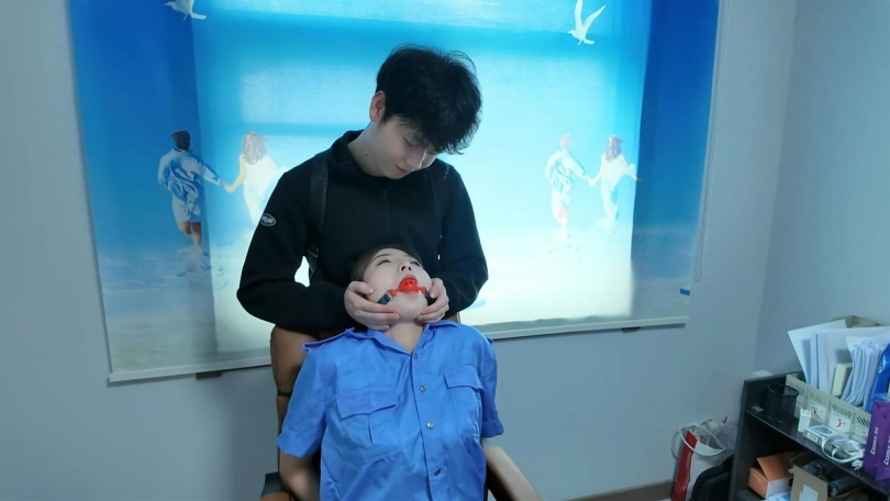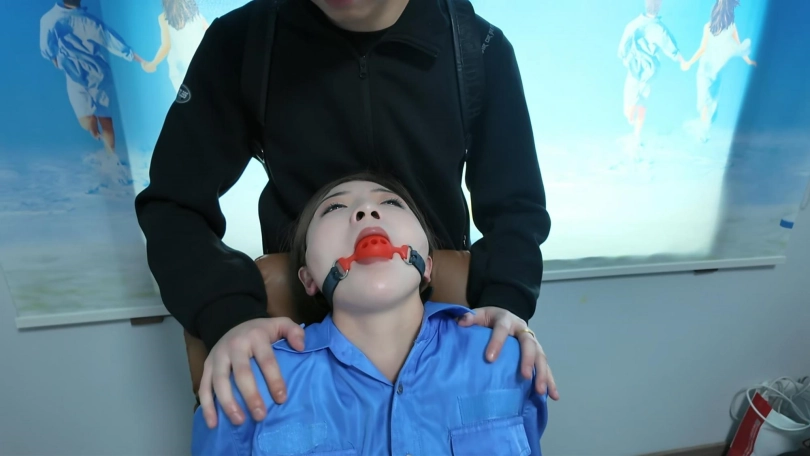 妈妈在办公室准备下班,没想到儿子到办公室找妈妈,谁知道儿子是带着想和妈妈玩捆绑游戏的目的来的,先辰=趁妈妈不注意,给妈妈带上手铐,有堵嘴,推到另外一个房间,期间差点让妈妈同事发现,还好赶快撕开封闭妈妈的嘴,糊弄同事走了,谁知道同事走之后,儿子还是不肯放手,不停抚摸妈妈,还一直拉动股绳,弄得妈妈呻吟不断,最后瘫软到椅子上