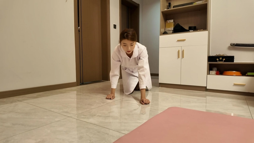 为了业绩、王总要求女经理换上护士装在陪玩一次捆绑游戏、这次必须主动要求、没办法,女经理换上护士装,慢慢从房间里面爬出来,爬到王总脚下,用胸部给王总按摩,又主动解开衣扣,露出[X_X],拿起王总的手让王总抚摸,王总到办公室,女经理跪在客厅等候,想起要求主动,就到办公室,脱去衣服,跪求王总把她捆绑成驷马放到办公桌上面,然后就主动钻到办公桌下面给王总舔手指,把王总刺激的受不了了,带到客厅吊起来震动玩弄,被玩的娇喘连连
