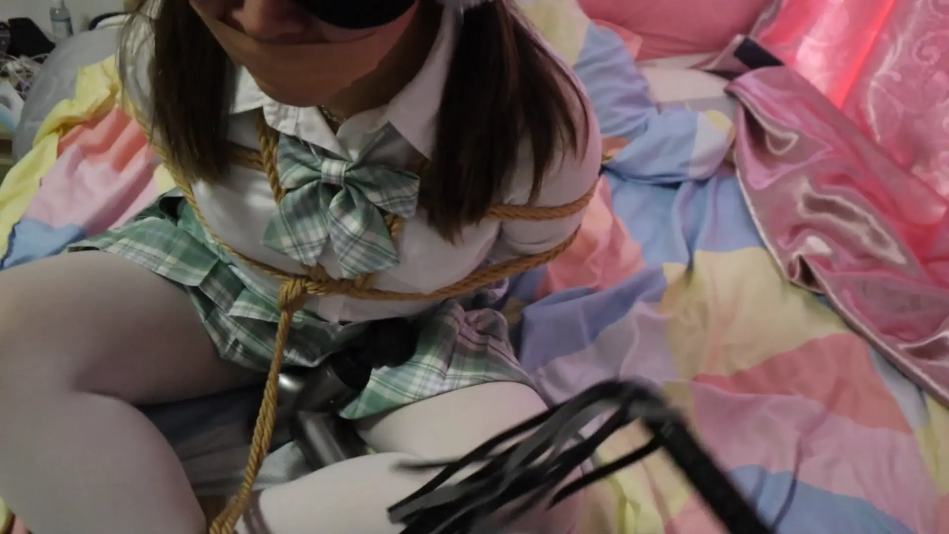 VIVI 甜声萝莉的盘腿缚堵嘴,最近VIVI谈了男朋友,男朋友对她越好,VIVI就觉得会缺了点什么,就会来主人这里接受轻受惩罚,各种欺辱鞭虐,嘴上一边含含糊糊哭着的喊着不要但心里别提多爽了。