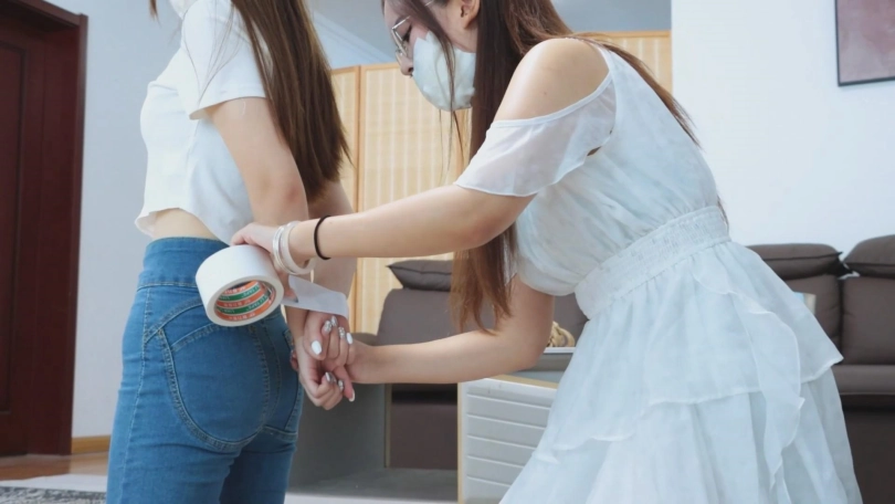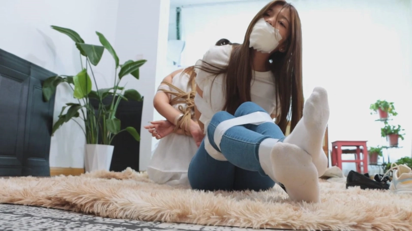 说说玩法,这一集是比较简单的玩法,两人都有逃脱的余地,自然少不了的是原味互相堵嘴,以及雷打不动的白棉袜元素,我一直以来的初心从未改变。二人堵嘴后再次换上的是要求她们自己穿来的原味袜子,在后面的剧集中会有用自己的原味堵嘴的桥段,也算是花了重金,希望各位能期待一波。在此感谢一位同好给我提供了不少胶带的选择,我这次也是尝试了泡棉胶带封嘴和养生胶带的捆绑组合,效果还不错,也感谢给我提过建议或帮我想过点子的所有朋友,好的作品离不开你们的支持。