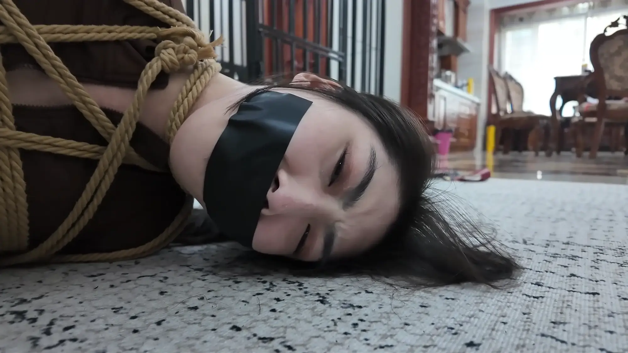 雨诺与南清一前一后被带到了囚禁她们的地方,一番挑逗后南清双手双腿也被紧密捆绑起来,雨诺也被团缚侧躺在地上,米粒开始肆意玩弄两人的身体,并时不时表示两人的身材很好,这次又能卖个好价钱,她先后拿道具抽打两人的身体,并用手挠两人的脚取乐,最后甚至用脚挑逗两人。玩累的米粒伸了伸懒腰,把男人叫出来表示自己要休息,让他看会儿两人。