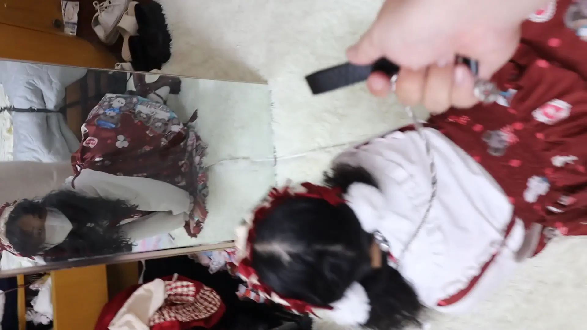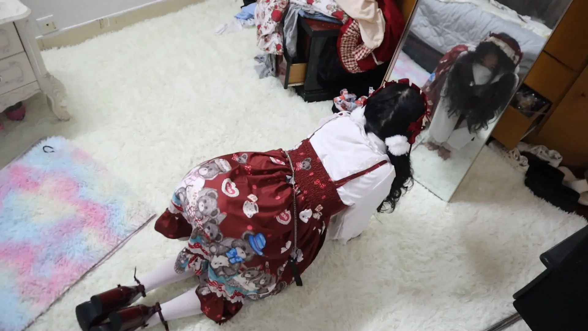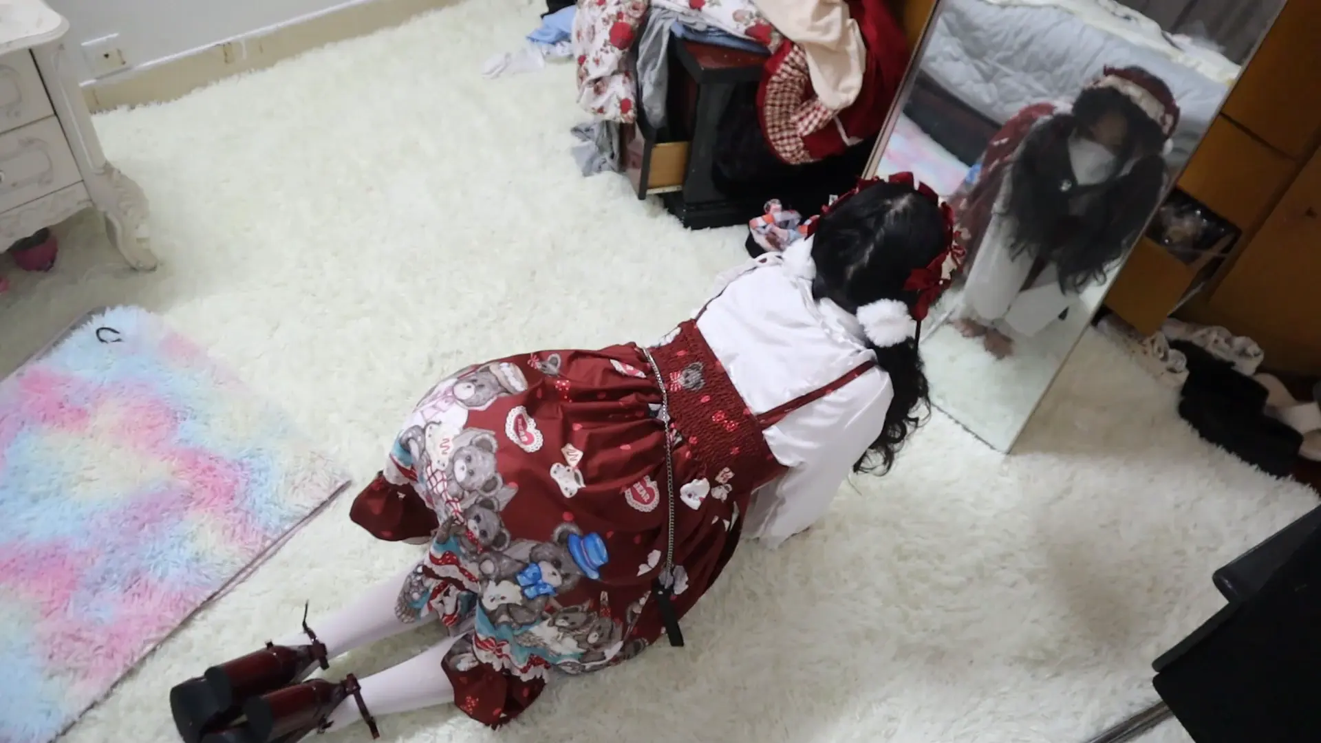 好久不见 清纯活力的属性M虞琳,圈养超大只高挑漂亮洛丽塔白丝少女母狗,对着镜子跪爬一边害羞一边发春的母狗,手脚被圈住,脖子上带狗链,调教之余掀起裙子被鞭子狠抽呜咽跪爬,一边被虐一边呜呜浪叫