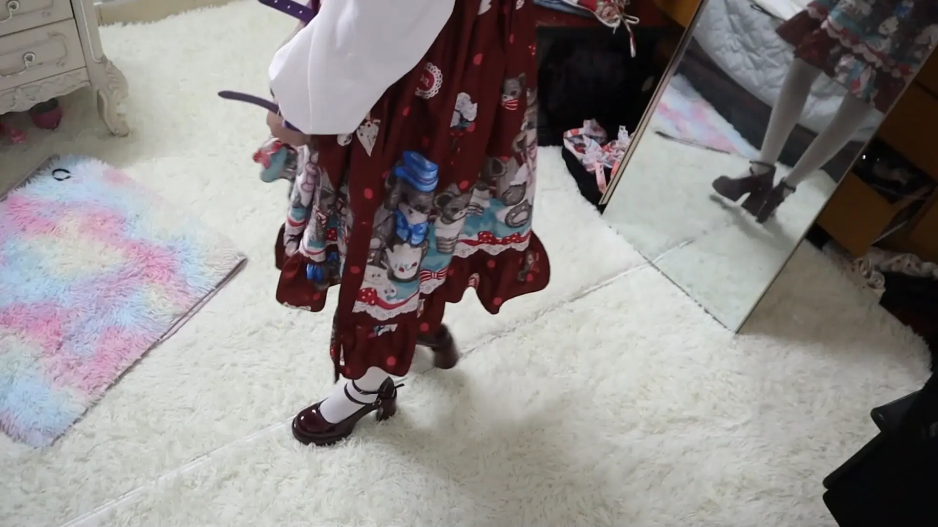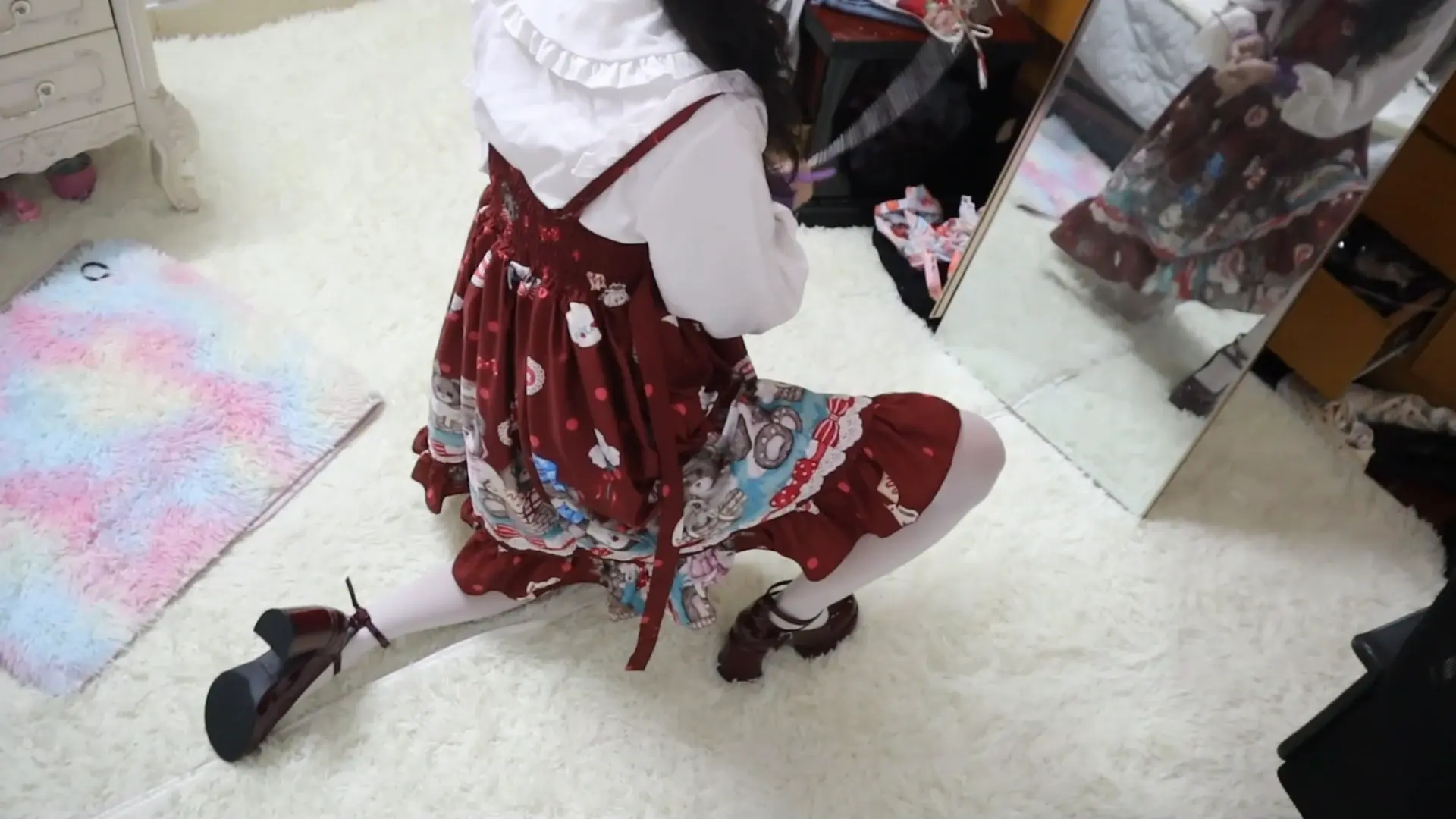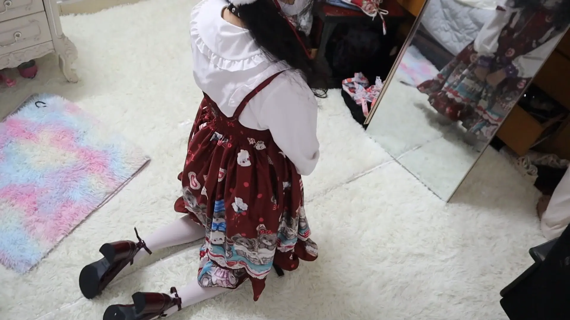 好久不见 清纯活力的属性M虞琳,圈养超大只高挑漂亮洛丽塔白丝少女母狗,对着镜子跪爬一边害羞一边发春的母狗,手脚被圈住,脖子上带狗链,调教之余掀起裙子被鞭子狠抽呜咽跪爬,一边被虐一边呜呜浪叫