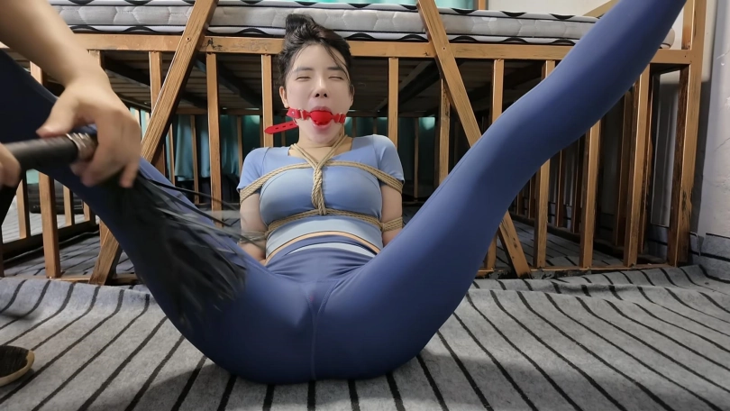 十一和男友把瑜伽教练佳佳诱骗到家中捆绑调叫,最后捆绑到房间里面囚禁,十一想和男友玩捆绑游戏,被男友分腿绑到床上,鞭打,挠痒,td,调叫到失禁