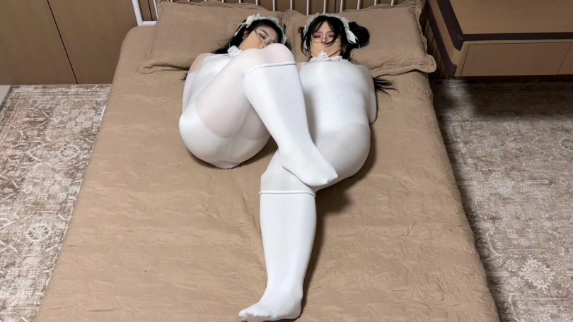 【逍遥】《美艳女杀手的洋娃娃生活02》吴晗曼妮 身材丰满的2大美女 被彻底改造成洁白的洛丽塔可爱白丝抱枕