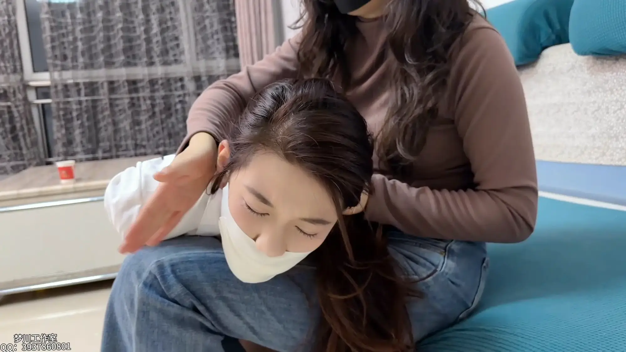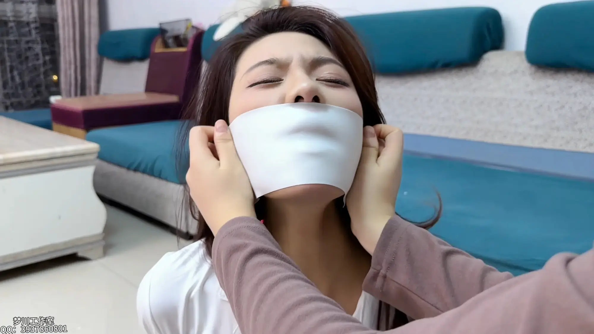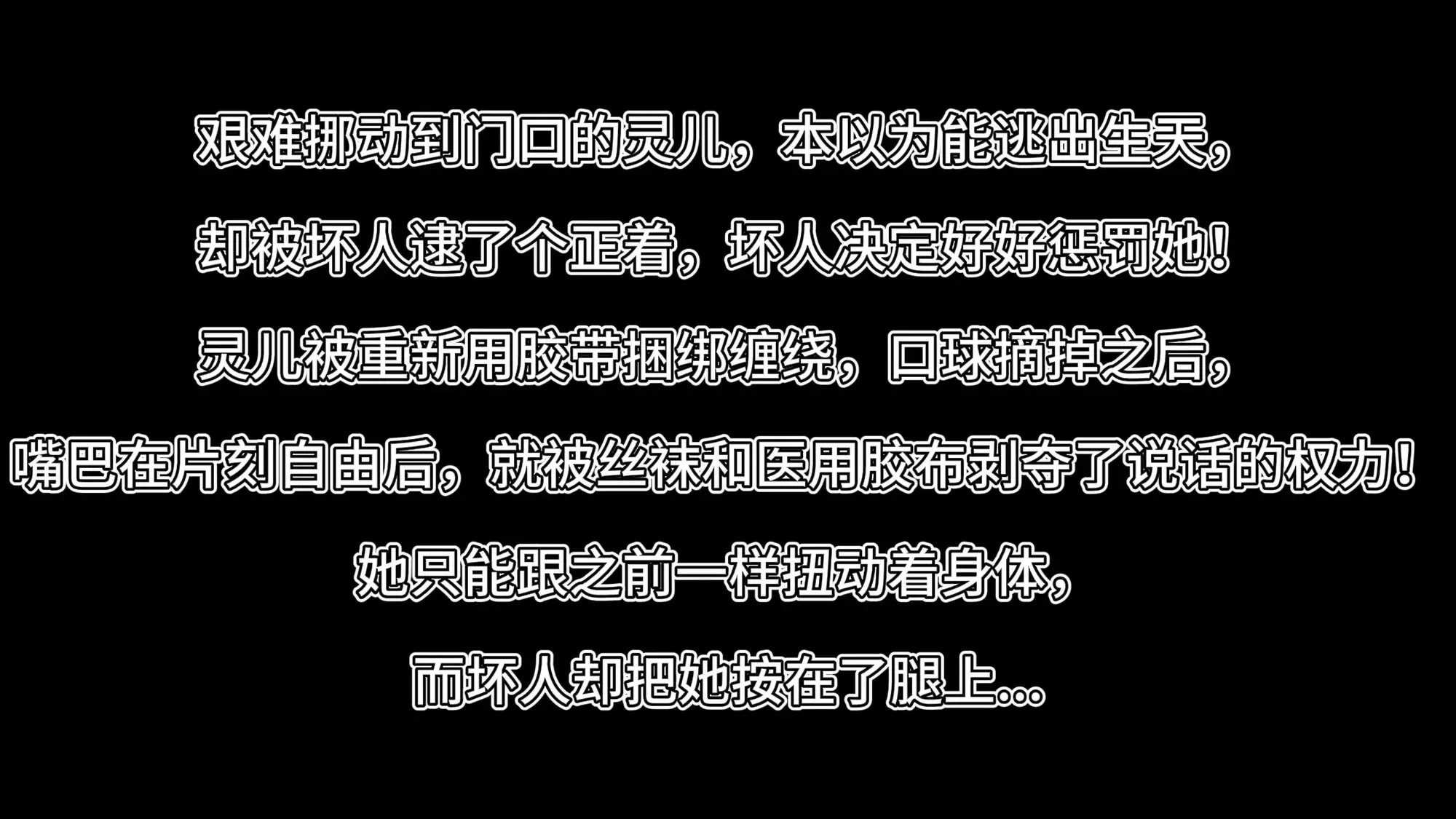 灵儿被重新用胶带捆绑缠绕,口球摘掉之后,