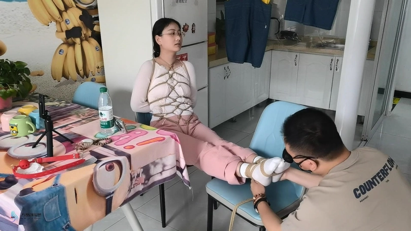 【JS】【流星客】眼镜妹子龟甲捆绑白棉袜口球堵嘴TK