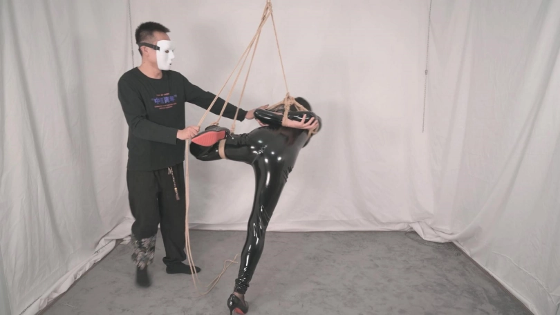 沐小雨想当女S绳师,本S勉为其难教教她,先从最基本的日式小高手示范,然后展示如何从容地悬吊,吊起后玩心大起,TK、打屁股、电击、荡秋千,连跳蛋都用上了,小雨一直被吊着玩弄,一会被挠的大笑不止,一会被电击吓得魂不附体,还不时挑衅本S,越反抗越兴奋,让本S玩得更起劲了,加上跳蛋的不断震动和长时间的悬吊,越玩越嗨欲罢不能,直到让她精疲力尽口水从口球不断流出呻吟渐渐微弱为止。