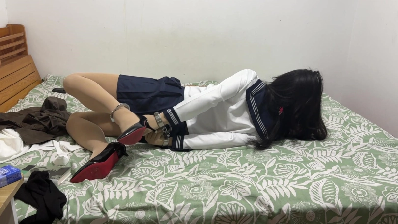 【柚里】下班的美女白领被女贼劫持,强迫穿水手服高跟鞋被铐逃脱不得