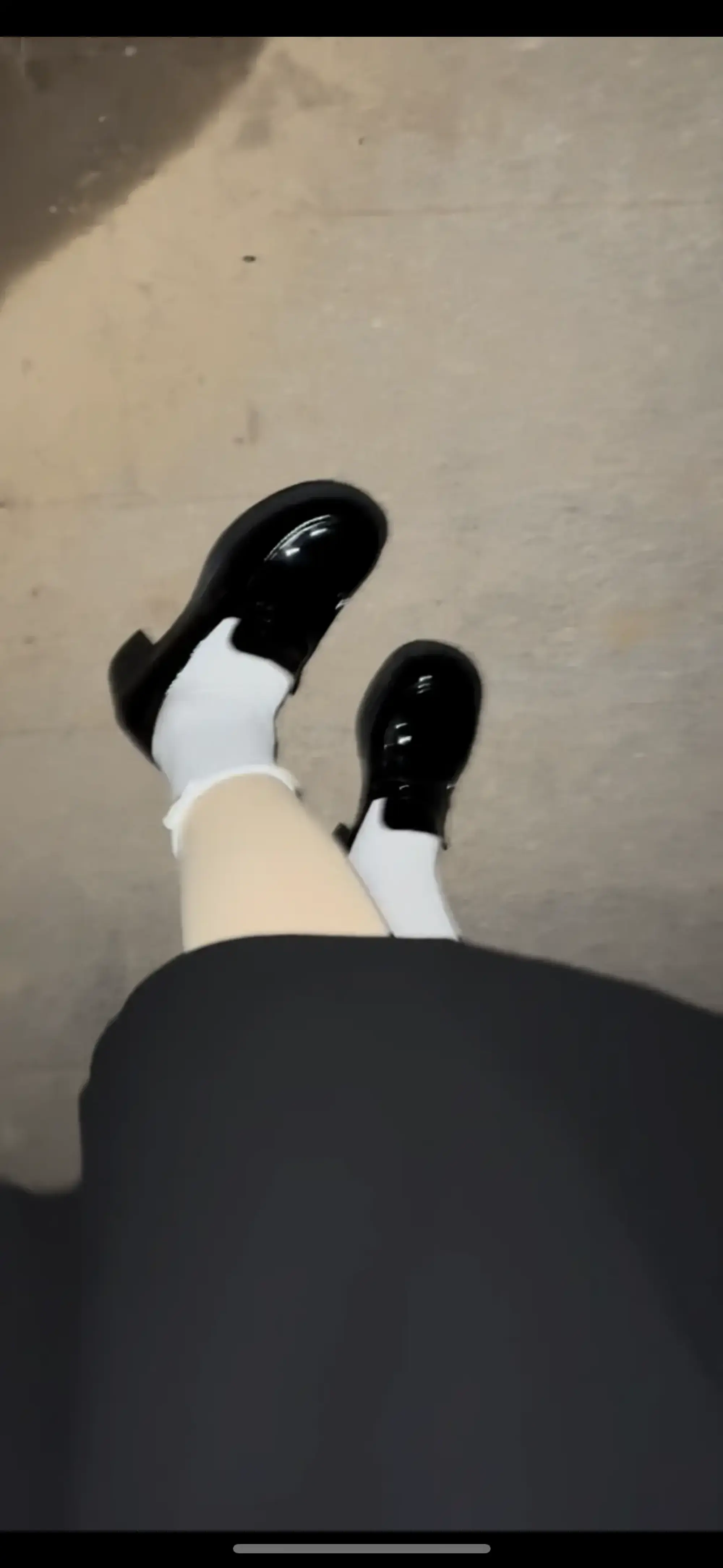 来到公园找了个没人的椅子,先把外面的衣服脱了,露出裙子和丝袜来,脱掉自己的鞋子换上小皮鞋,就录了几段走路的视频。这是我第一次伪街!!!就碰到了好多好多路人,都用那种奇怪的眼神看着我,我内心十分惊慌失措,也不敢吱声,壮着胆子继续录像继续走着,实际上心已经快跳出来了!!