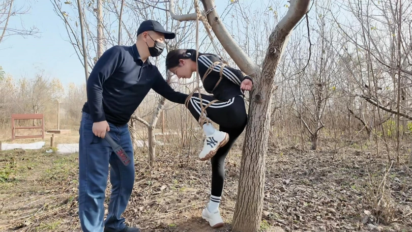 晨跑的十一一不留神跑到了一片小树林,结果被人绑架,绑好在地上被鞭子狂抽,又被吊到树上打屁股,这还不够,又绑到树桩上,用棒棒玩弄,一直到完全失禁....大量的鸟液喷涌而出