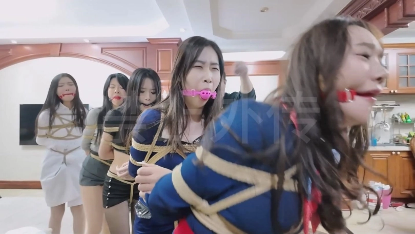 两个女人贩正在折磨女探员和大小姐,幕后老板进来了,本来是想邀功的二人却被老板迷晕,五位美女都被绑了起来,被老板卖到国外。