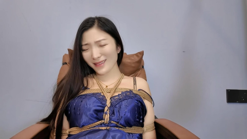 购买了一个新工具,正好佳佳到了,让佳佳换衣服试一次,换上一件蓝色睡裙,固定到架子上,开启快乐新模式,最后爽到飞起