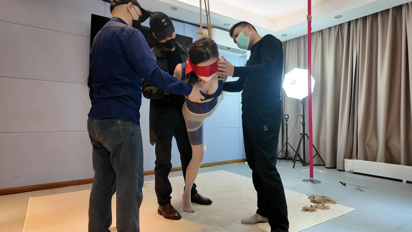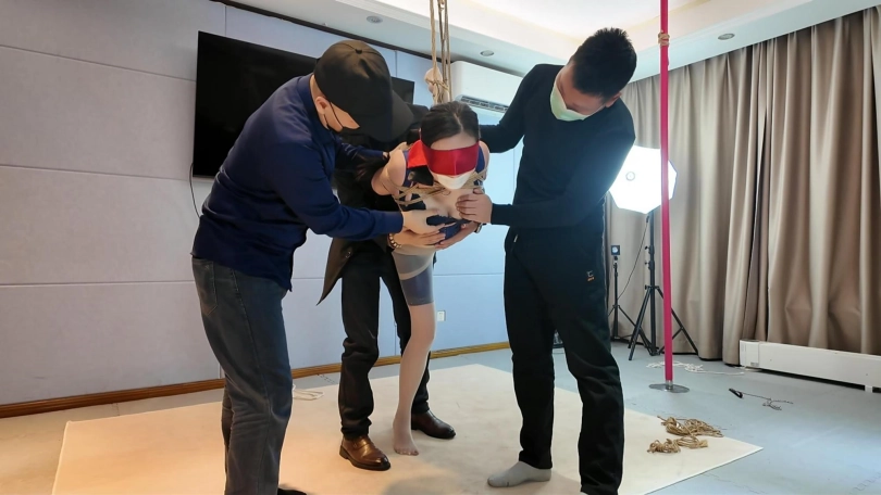把佳佳胶带堵嘴,带口罩,捆绑送货上门,被捆绑好蒙上眼睛吗,跪在房间等待客户调叫,没想到竟然一下子进来两名神秘男子,最后又有一名男子加入,开启了三人调叫大戏,捆绑,堵嘴,蒙眼,抚摸,按摩,推搡,踩踏,各种元素拉满...那种无助感深深的真实体现,这也是我最喜欢的系列