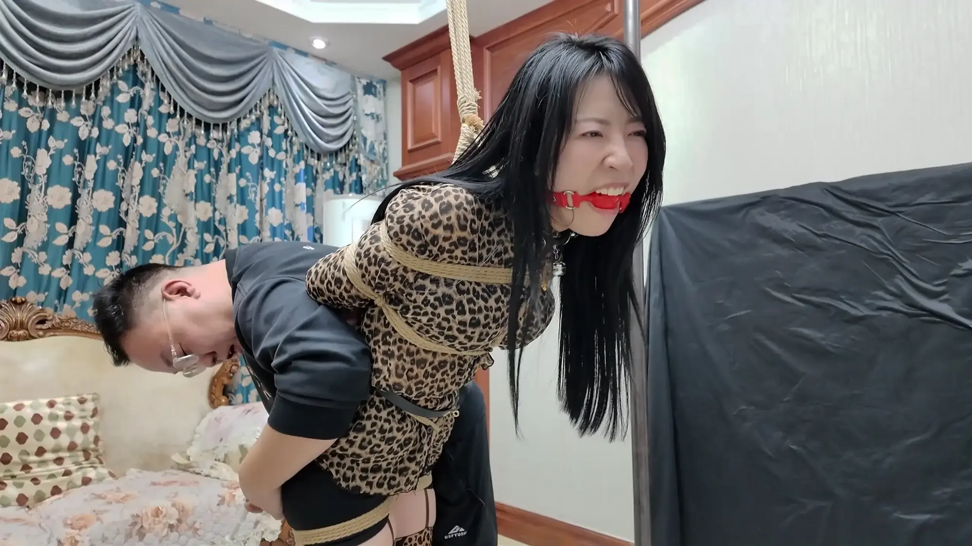 莫璃和紫怡有气无力的挣扎,但是无济于事,只能任由柴哥摆布,让绳子慢慢禁锢自己的身体...